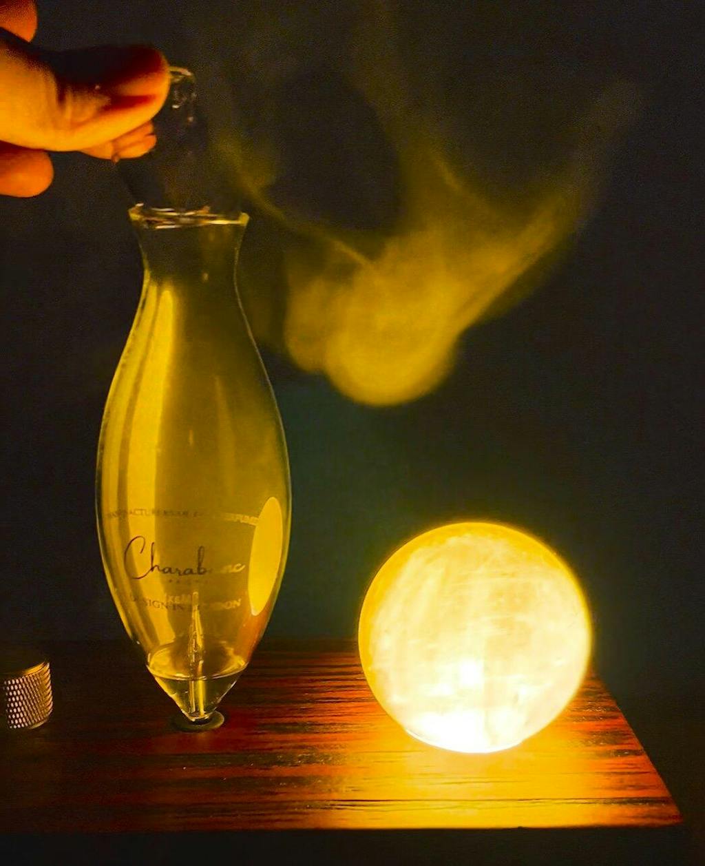 Material: Metal, vidro soprado à mão, pinho de cânfora